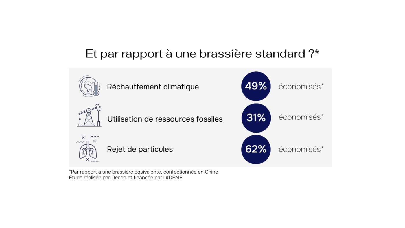 Pour réaliser nos ACV nous avons fait appel au cabinet de conseil Deceo, avec qui nous avons pu quantifier l’empreinte écologique de nos vêtements. Grâce à cette mesure d’impact, nous avons pu identifier les étapes les plus polluantes de notre chaîne de production et mettre en lumières les leviers d’actions pour réduire notre impact environnemental.